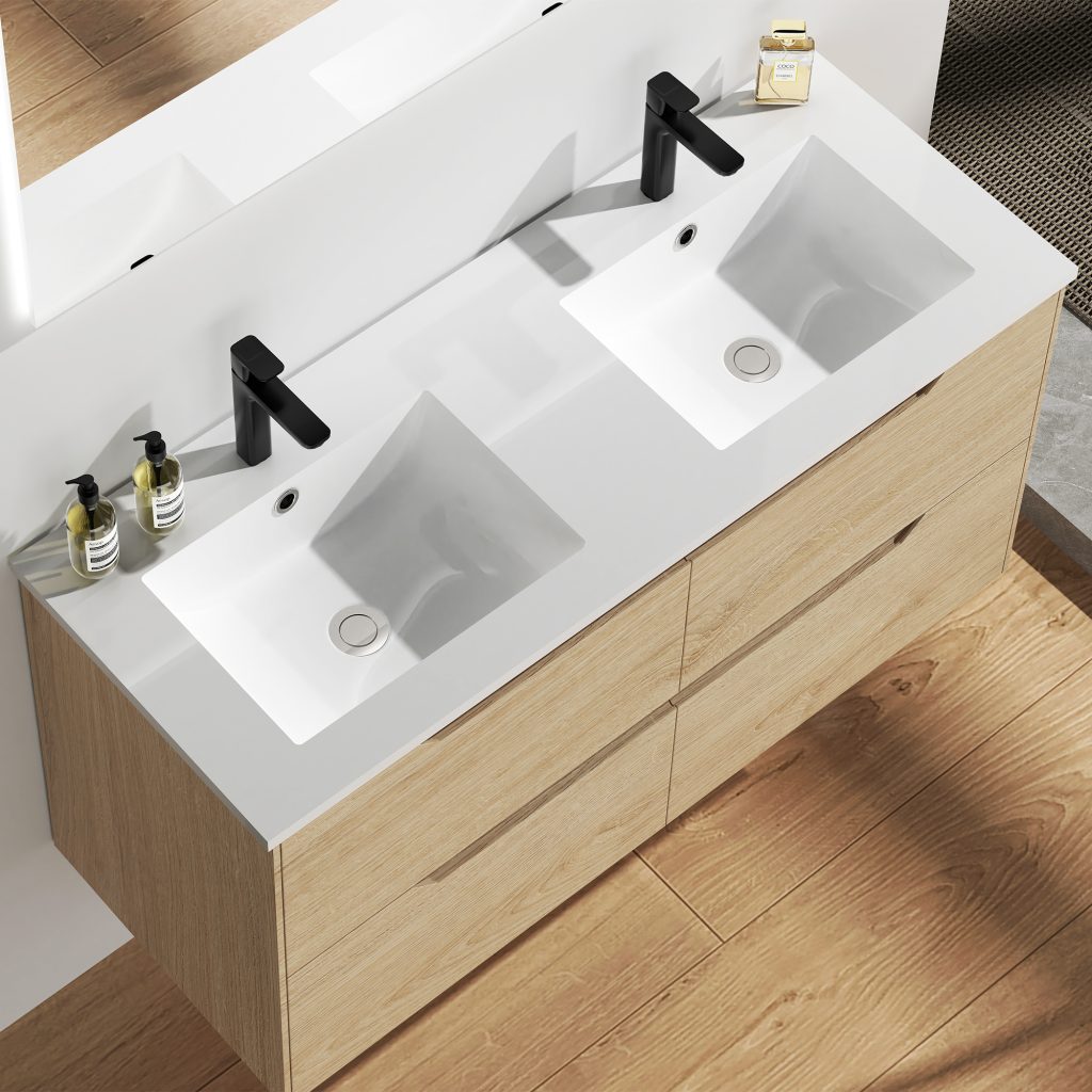• Double Basin Luxury: No more fighting for the sink in the morning rush. The integrated ceramic top features two separate washing bowls, making it perfect for couples and master ensuites.