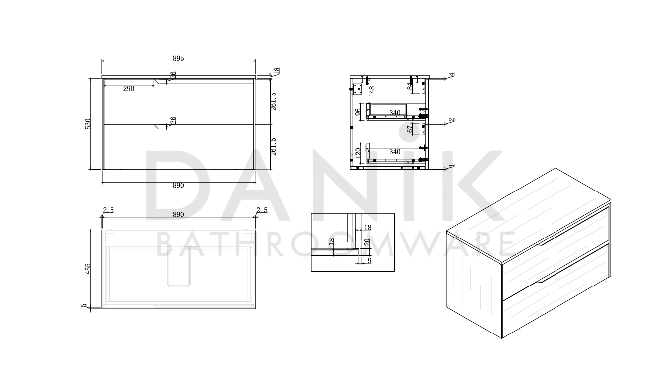 - Cabinet Dimensions: 890mm (W) x 455mm (D) x 530mm (H)