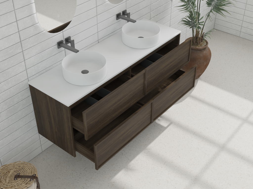 Categories: 1500mm Vanities, Bathroom Vanities By Type, By Material, By Series, Dark Oak Bathroom Vanities, Double Basin Vanities, Modern, Plywood Bathroom Vanities, Plywood Vanity, Vanities, Wall-Hung Bathroom Vanities