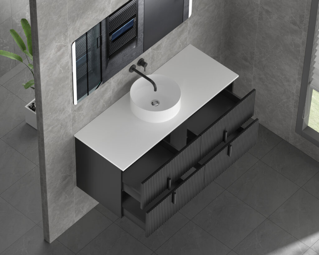 Categories: 1200mm Vanities, Bathroom Vanities By Type, Black Bathroom Vanities, By Material, By Series, Modern, Non overflow, Solid Wood Vanity, Vanities, Vanity Wastes, Wall-Hung Bathroom Vanities