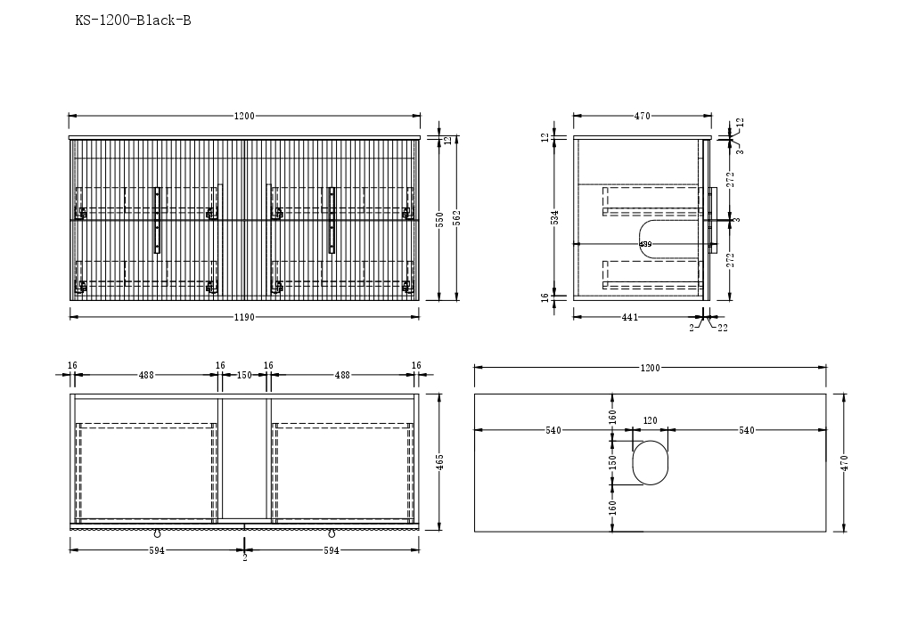 - Dimensions: 1190W × 465D × 550H mm (Two drawers)