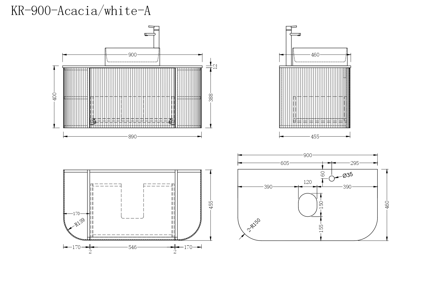 - Basin: K3202GW – 360W × 360D × 120H mm