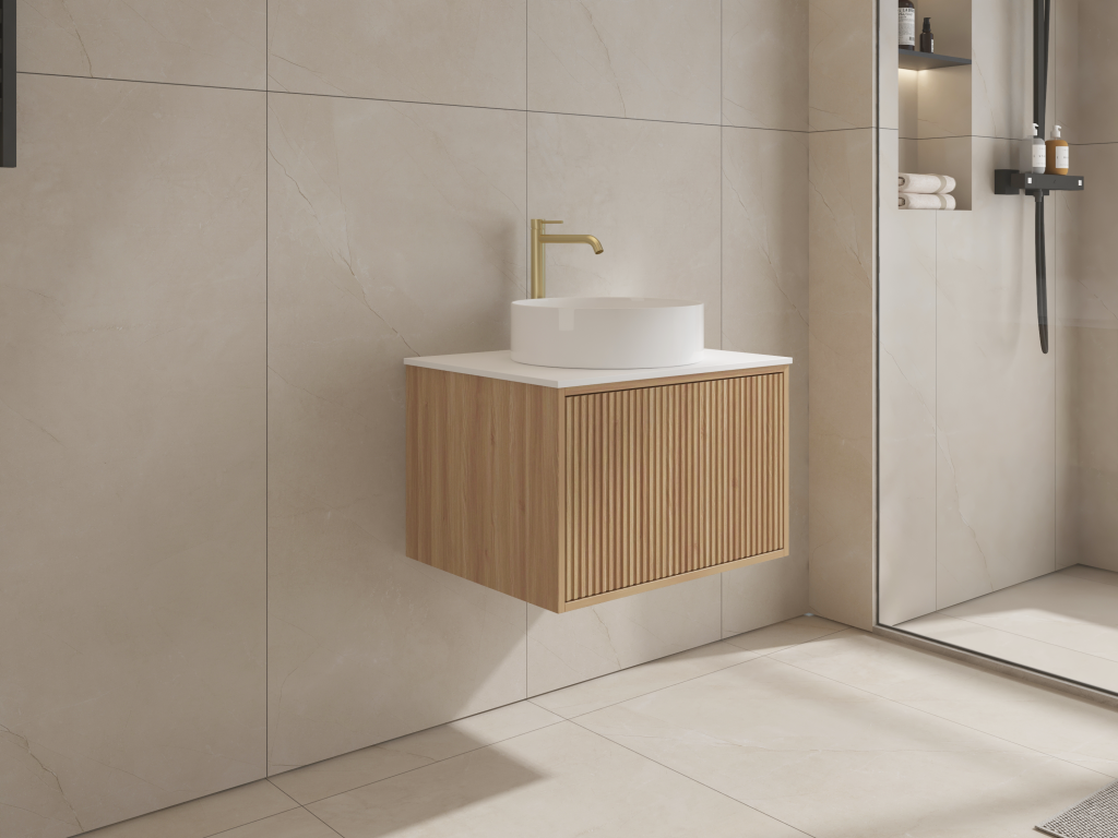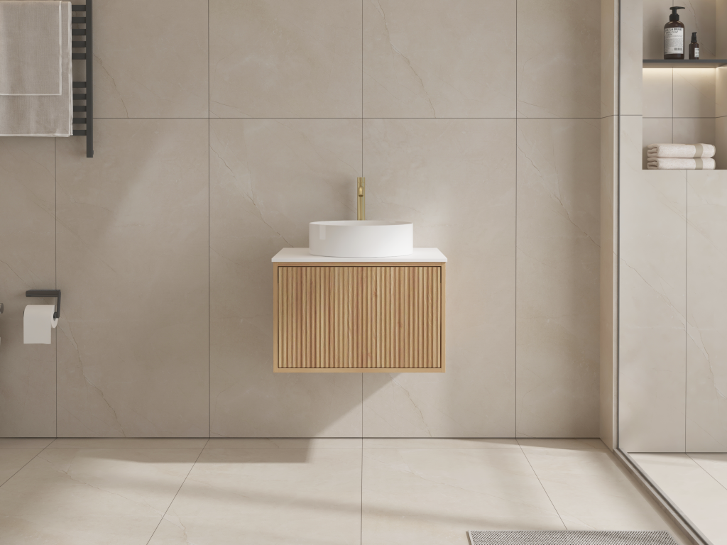 Model: Aura 600mm Wall-Hung Vanity – Acacia Finish