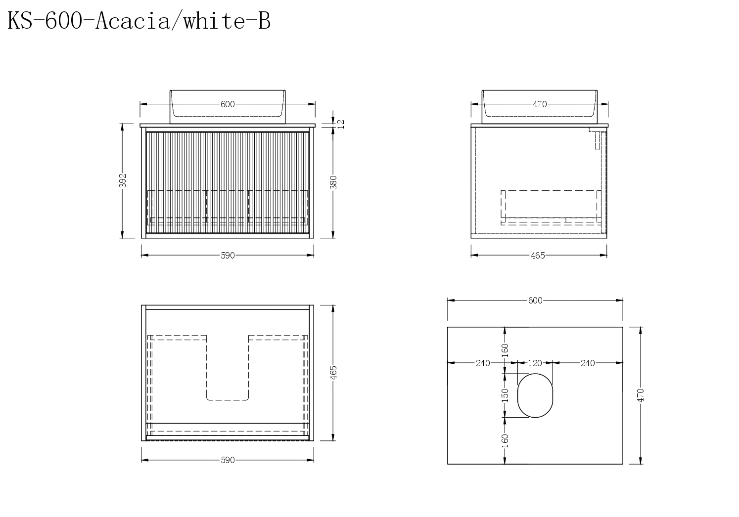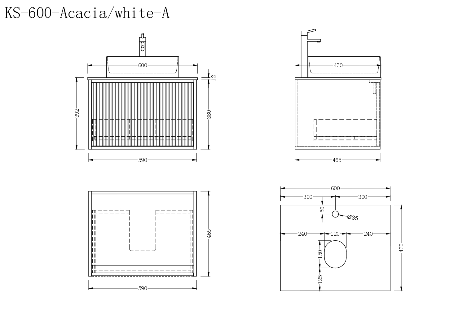 Vanity Dimensions: 600W × 465D × 380H mm
