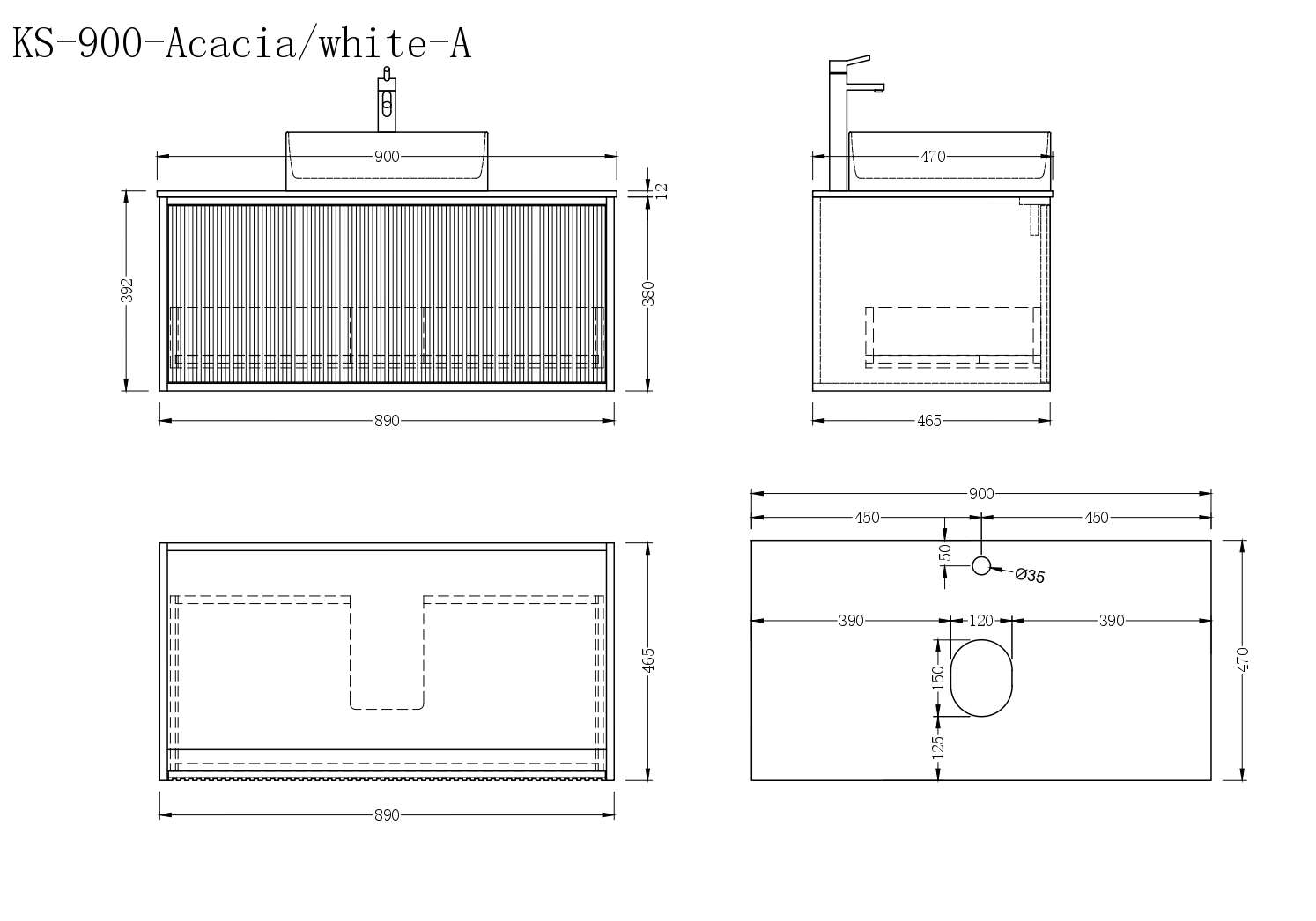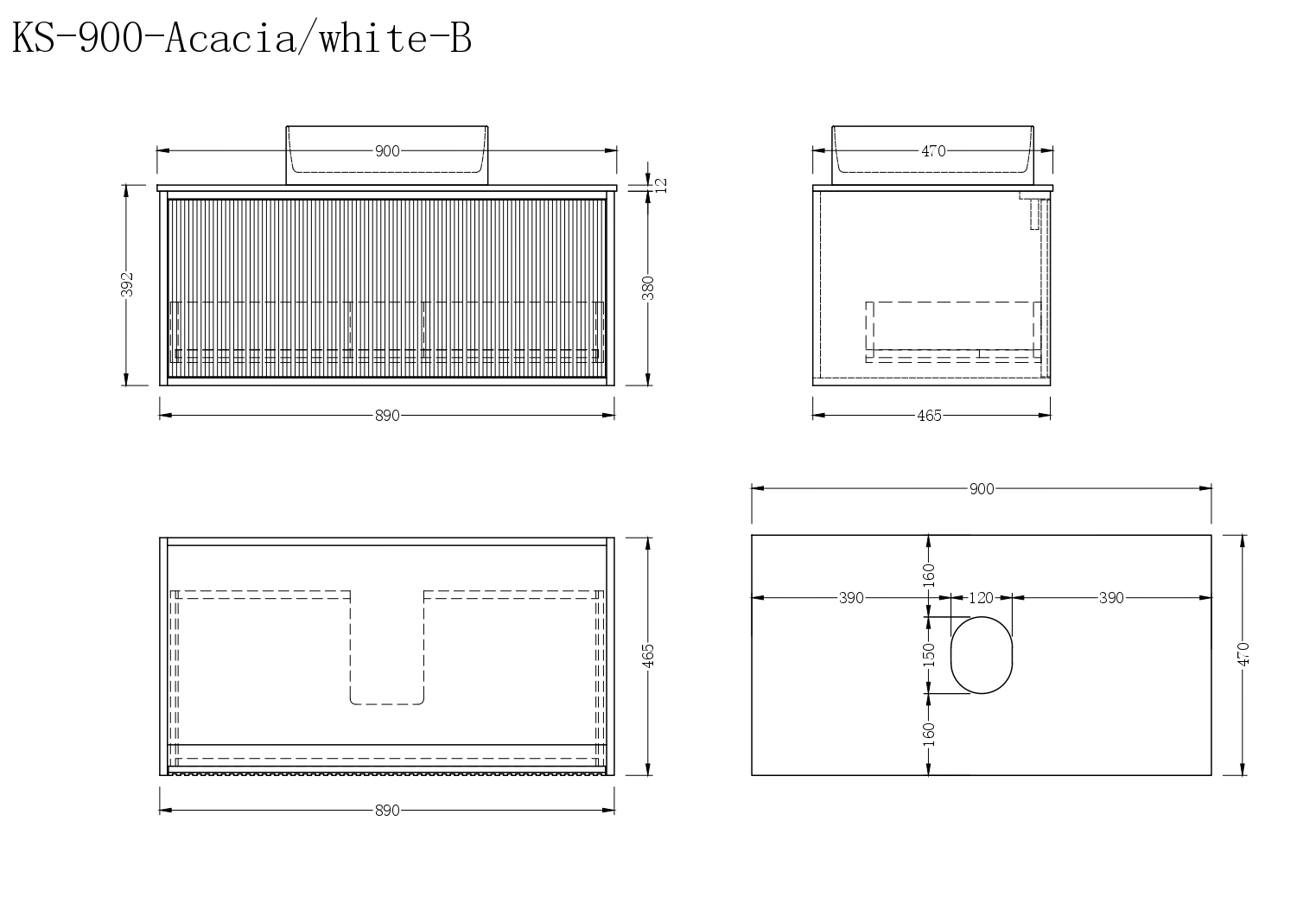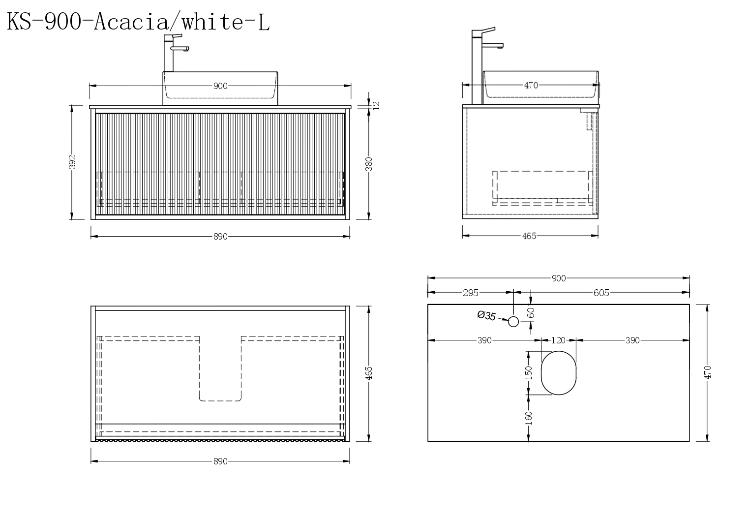 - Overall with Basin: 900W × 460D × 512H mm approx.