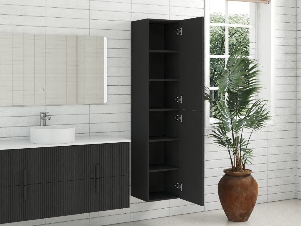 Wall-Hung Towel Cabinet – 350W x 300D x 1600H mm | Black Solid Wood Door Front