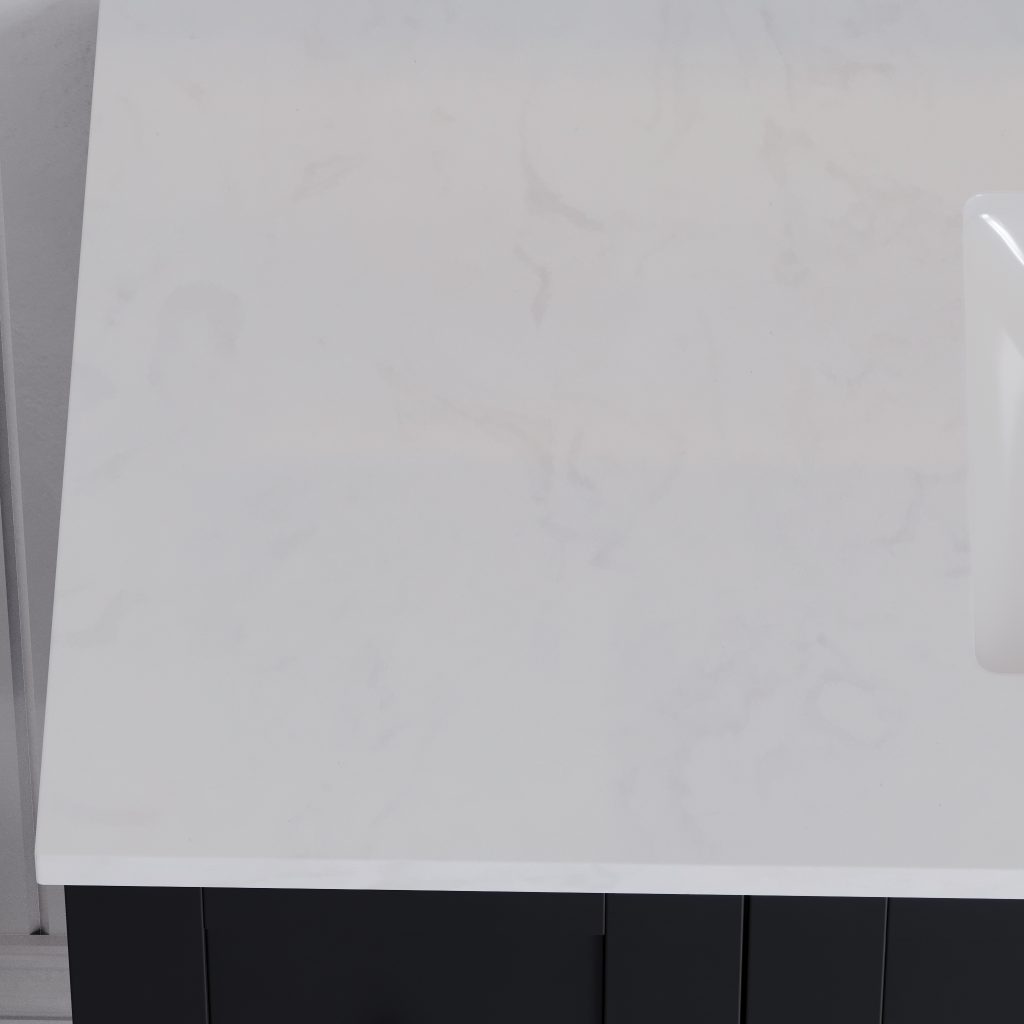 - Luxury Stone Top: Natural quartz countertop with your choice of ceramic under-mounted basin or vessel basin. Each stone top is unique, featuring natural variations that enhance its character.