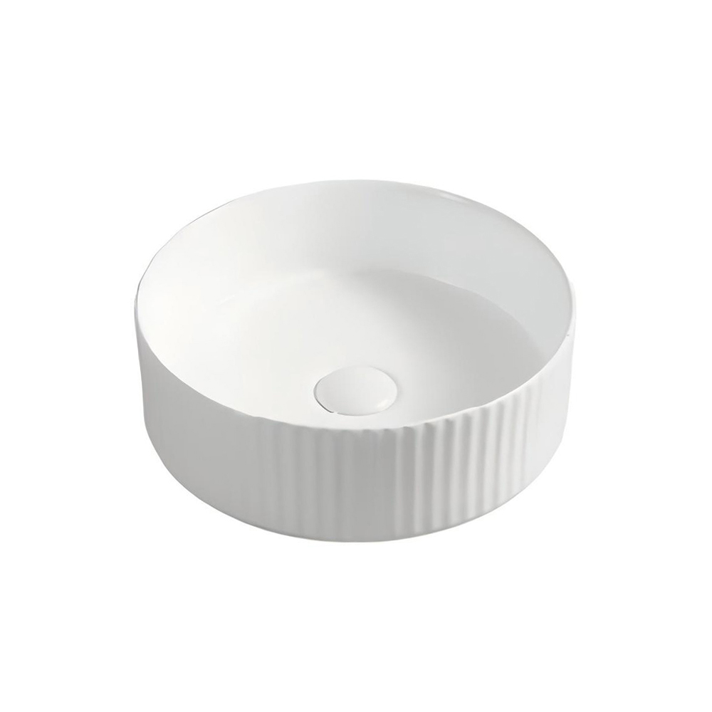 Linea Fluted Round Vessel Basin - Gloss White (360mm / 400mm)